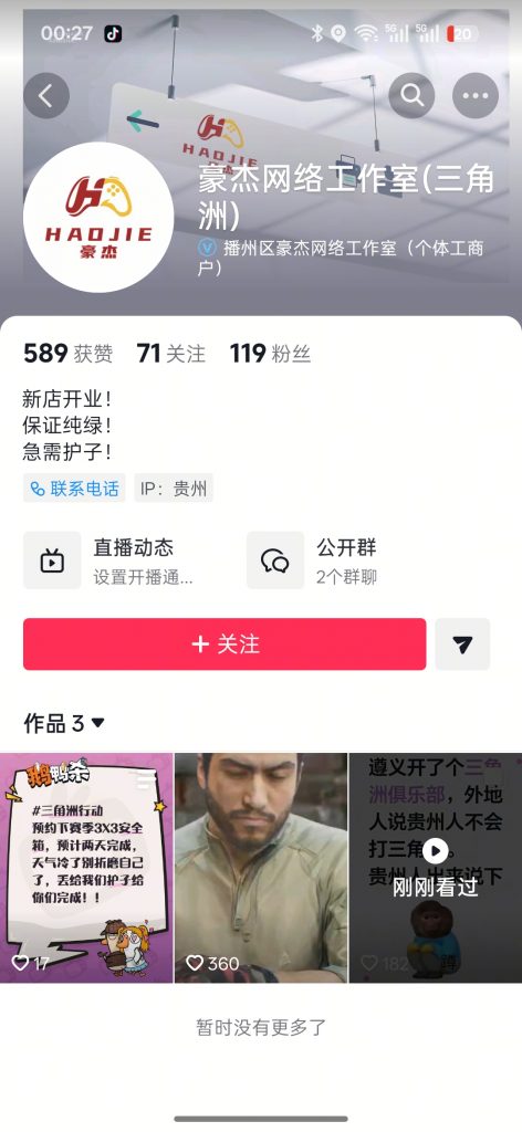 个体户名称:播州区豪杰网络工作室(个体工商户)